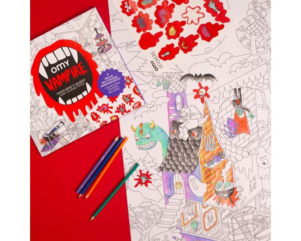 Fantômes, cérémonies secretes et vampires sanguinolents vous convient le temps d'une nuit au coeur d'un étonnant château hanté. Un trait plein d'humour et une multitude de détails, ce poster vous promet une experience graphique à partager entre toutes les générations. Un espace artistique sans limites pour jouer et colorier seul ou à plusieurs, à déplier au sol ou sur une table à accrocher au mur.
