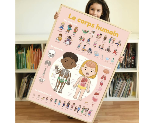 Avec ce jeu, les enfants se passionnent pour le corps humain et son fonctionnement : les organes, les fonctions vitales, les particularités du corps… Les enfants collent les stickers sur le poster géant, et reconstituent ainsi une très belle affiche pour la chambre.