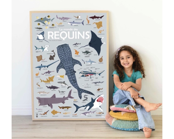 Une affiche de grande taille pour enfants, à réaliser seul ou à plusieurs, pour apprendre en s’amusant sur les requins.