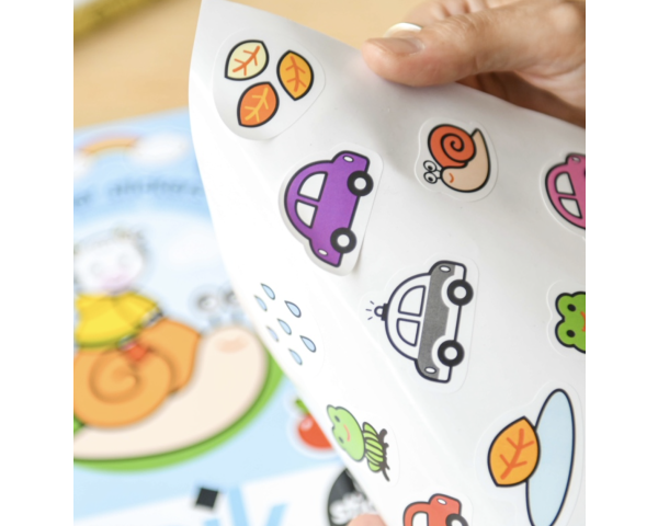Les tout-petits ont enfin leurs premières gommettes, faciles à attraper et à manipuler. Ils s’amuseront à composer 6 grandes images en collant les grosses gommettes sur le décor. Une activité qui ne tache pas et permet à l’enfant de faire travailler ses dix doigts.