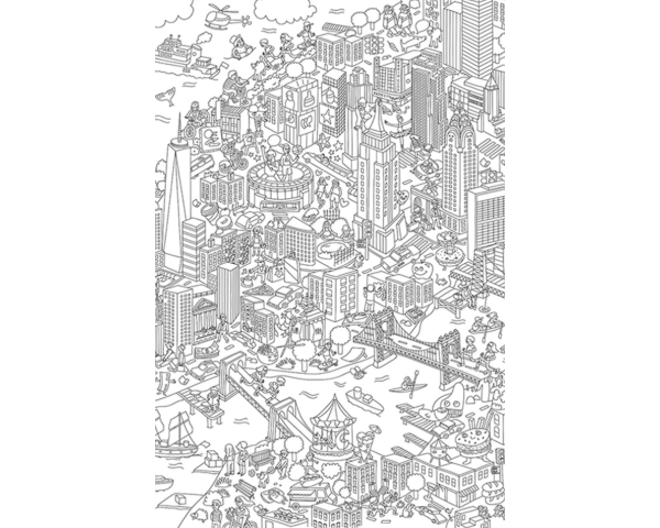 A partir de 3/4 ans. Seul ou à plusieurs, à déplier au sol, à accrocher au mur ou à utiliser en nappe. Plié dans une belle pochette colorée, c'est un poster fun, décalé et graphique, à partager entre toutes les générations! Un trait plein d'humour et une multitude de détails, un véritable voyage graphique à partager entre toutes les générations. Un espace artistique sans limites pour colorier seul ou à plusieurs, à déplier au sol, à accrocher au mur ou à utiliser en nappe.