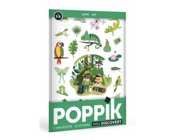 Le Poppik Mini Discovery est un kit d'activités pédagogiques conçu pour les enfants de 3 à 8 ans. Il comprend des affiches géantes et des stickers repositionnables, permettant aux enfants d'explorer des thèmes variés comme la jungle, le jardin et la mer.