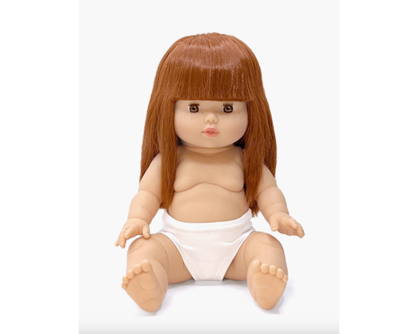 Ambre, poupée Gordis caucasienne exclusive Minikane®. – Taille de 34cm avec jambes pliées (ne tient pas debout) – Yeux caramels – Cheveux longs roux avec frange