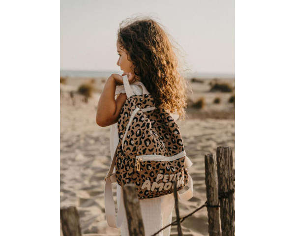 Ce joli sac à dos imprimé léopard et broderie "petit amour" est parfait pour accompagner les enfants à la crèche, chez la nounou ou l'école maternelle.