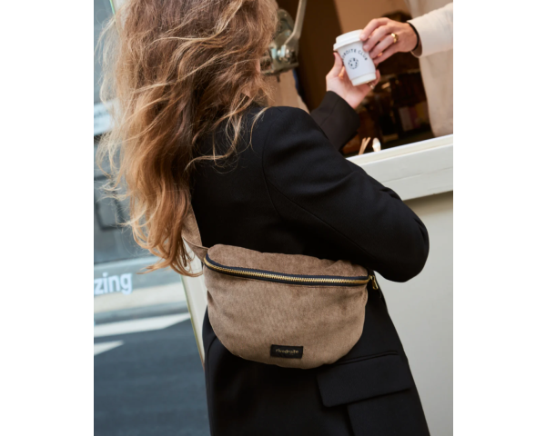 Ultra pratique, Custine est votre sac banane préféré depuis 2017. Sa anse ajustable vous permet de la porter sur un tshirt ou sur un manteau plus épais. Son compartiment arrondi accueille tous les dispensables d’une journée bien rangée. Custine se décline cette année dans un velours upcyclé aux fines côtes, souple et ultra doux. Elle se ferme par un zip YKK® doré. Sa doublure est upcyclée et noire. Elle est siglée d'une étiquette en nylon upcyclé.