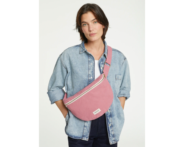 Sa doublure intérieure rouge est confectionnée à partir de surstock de l'industrie textile. Elle se ferme par un zip YKK® argenté.
