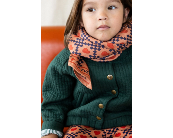 Illuminez votre style avec le foulard Latika AMOR en coton doux ! Son motif cœur moderne associé à un damier original lui confère un charme unique. Adapté aux petits comme aux grands, il deviendra vite un essentiel de votre garde-robe.