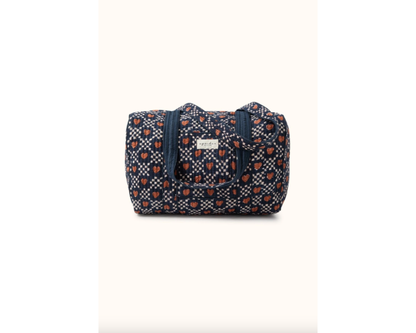 Le sac Buddha AMOR en coton matelassé séduit par son imprimé cœur graphique et original. Doté de poches plaquées pratiques, il est idéal en sac à langer ou en sac de voyage 48h. Léger et stylé, il conjugue praticité et charme romantique pour toutes vos aventures.
