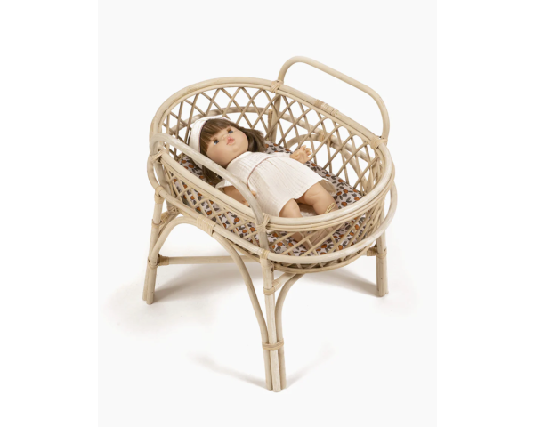 Couffin sur pieds « Padang » poupée + matelas en coton exclusif Peacocks roses de la Collection « JAKARTA », en bambou & rotin, pour poupée.