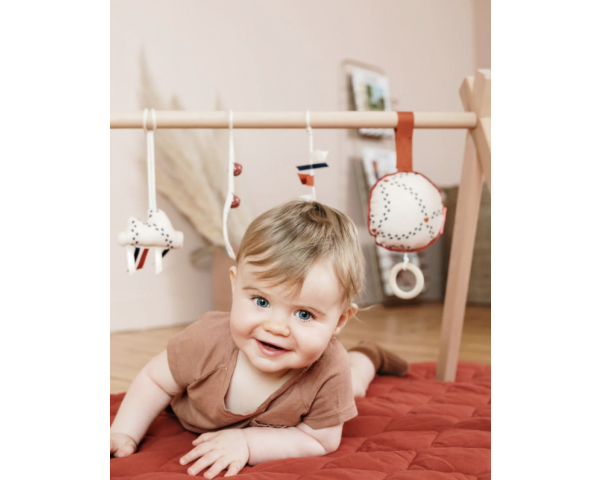 L’arche d’éveil pour bébé est appréciée des parents et surtout des bébés car parmi les accessoires il y a un petit coussin musical nomade. Et comme il est mécanique, pas besoin de piles pour le faire fonctionner la berceuse remonte toute seule. Ce coussin musical est aussi repositionnable grâce à son velcro qui permet de l’accrocher partout ! Et pour finir il est lavable en machine à 30°C.